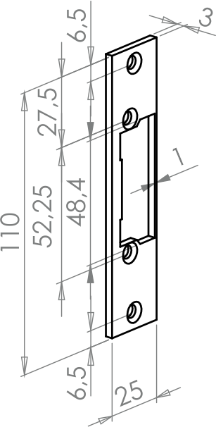 Blacha płaska elektrozaczepu z wyślizgiem 110 mm BS-110L