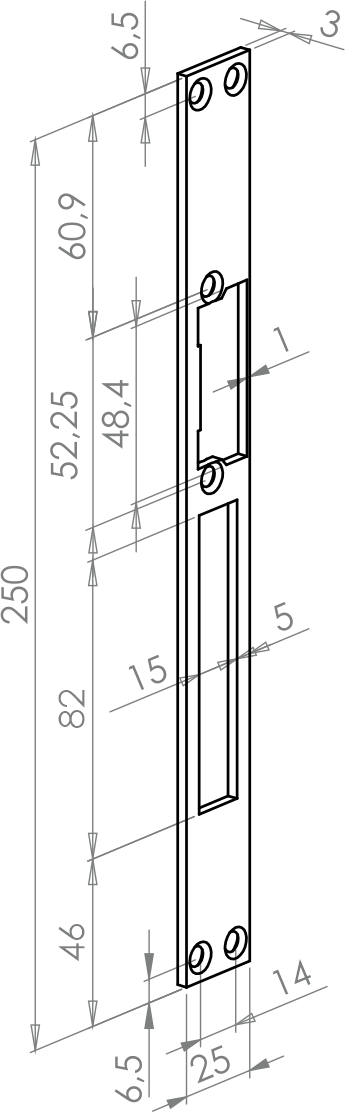 Blacha płaska elektrozaczepu z wyślizgiem 250 mm BS-250L