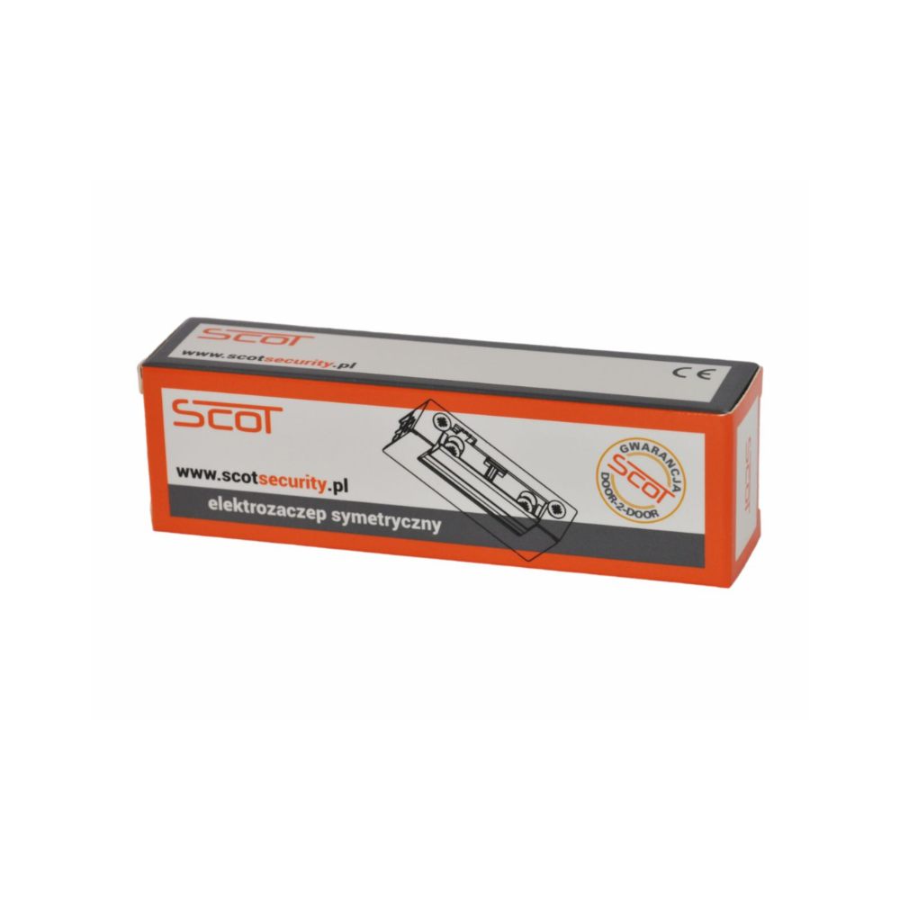 Niskoprądowy elektrozaczep symetryczny SCOT ES-S1224N-S (NC) klasy 3 z sygnalizacją stanu drzwi. Uniwersalne zasilanie 12-24V AC/DC. Wytrzymałość 4000N. Niskie zużycie energii (300mA przy 12V) i możliwość pracy ciągłej.