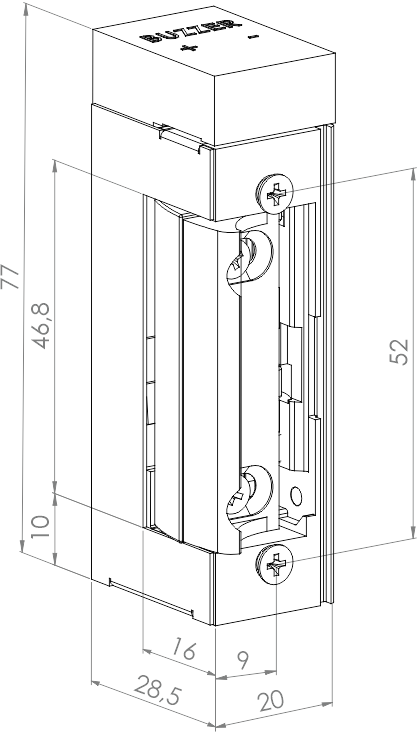 Ze względu na wbudowany moduł dźwiękowy, korpus elektrozaczepu jest nieznacznie wyższy (77 mm). Symetryczna budowa ułatwia montaż w drzwiach lewych i prawych, a regulacja języka (0-5 mm) pozwala na idealne spasowanie z ościeżnicą. Dodatkowo, wbudowany transil chroni elektronikę sterującą przed przepięciami, zwiększając niezawodność całego systemu.