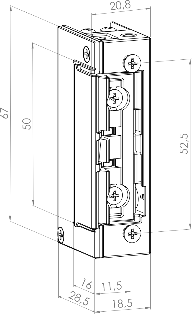 - Płynna praca: Wyprofilowana obudowa sprawia, że język zamka drzwiowego łagodnie "prześlizguje się" po elektrozaczepie, co zwiększa komfort zamykania drzwi.