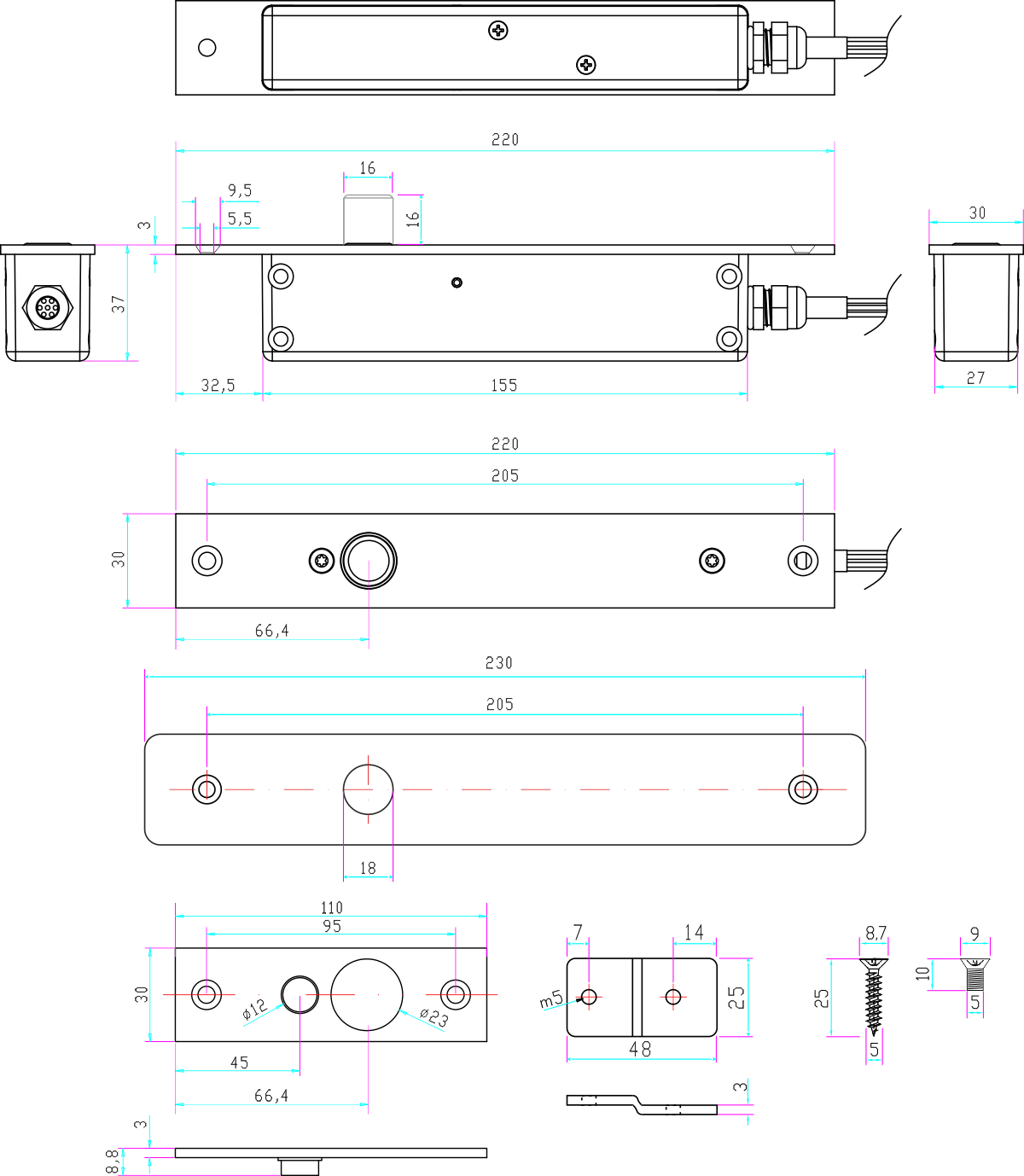 | Wymiary elektrozamka | 220 x 30 x 37 mm |