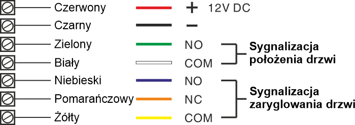 | Sygnalizacja stanu drzwi | Tak (styk NO) |