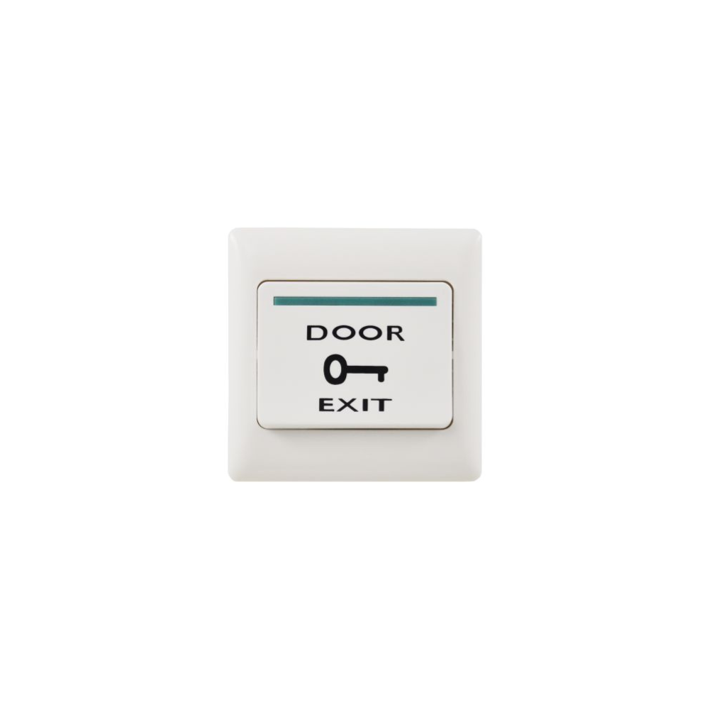 Obudowa przycisku została wykonana z wysokiej jakości tworzywa sztucznego. Panel o standardowych wymiarach 86 x 86 mm jest lekki, trwały i łatwy w czyszczeniu. Przycisk przeznaczony jest do montażu podtynkowego (wymagana głębokość puszki to ok. 25 mm), co pozwala na estetyczne wkomponowanie go w ścianę i ukrycie przewodów instalacyjnych. Wyraźny napis "DOOR EXIT" zapewnia czytelną informację dla użytkowników.