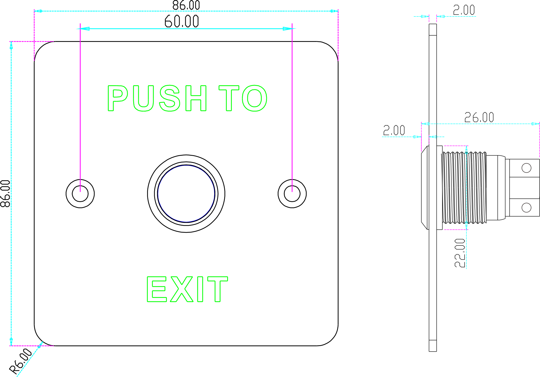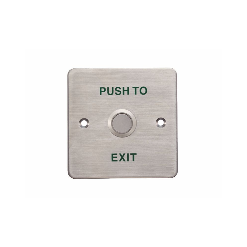 Kwadratowy przycisk wyjścia SCOT BT-7B to solidny model podtynkowy o standardowych wymiarach 86x86 mm. Wykonany w całości ze stali nierdzewnej, zapewnia wysoką trwałość i estetyczny wygląd. Wyposażony w styk NO o obciążalności 1A oraz czytelny napis "PUSH TO EXIT".