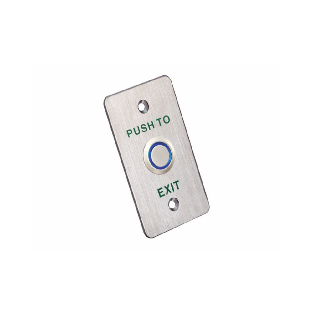 Podtynkowy przycisk wyjścia SCOT BT-7AN to wąski model (50 mm szerokości) wykonany ze stali nierdzewnej. Wyróżnia się estetycznym, niebieskim podświetleniem LED oraz uniwersalnymi stykami NO/NC. Idealny do montażu na ościeżnicach drzwiowych w nowoczesnych biurach.
