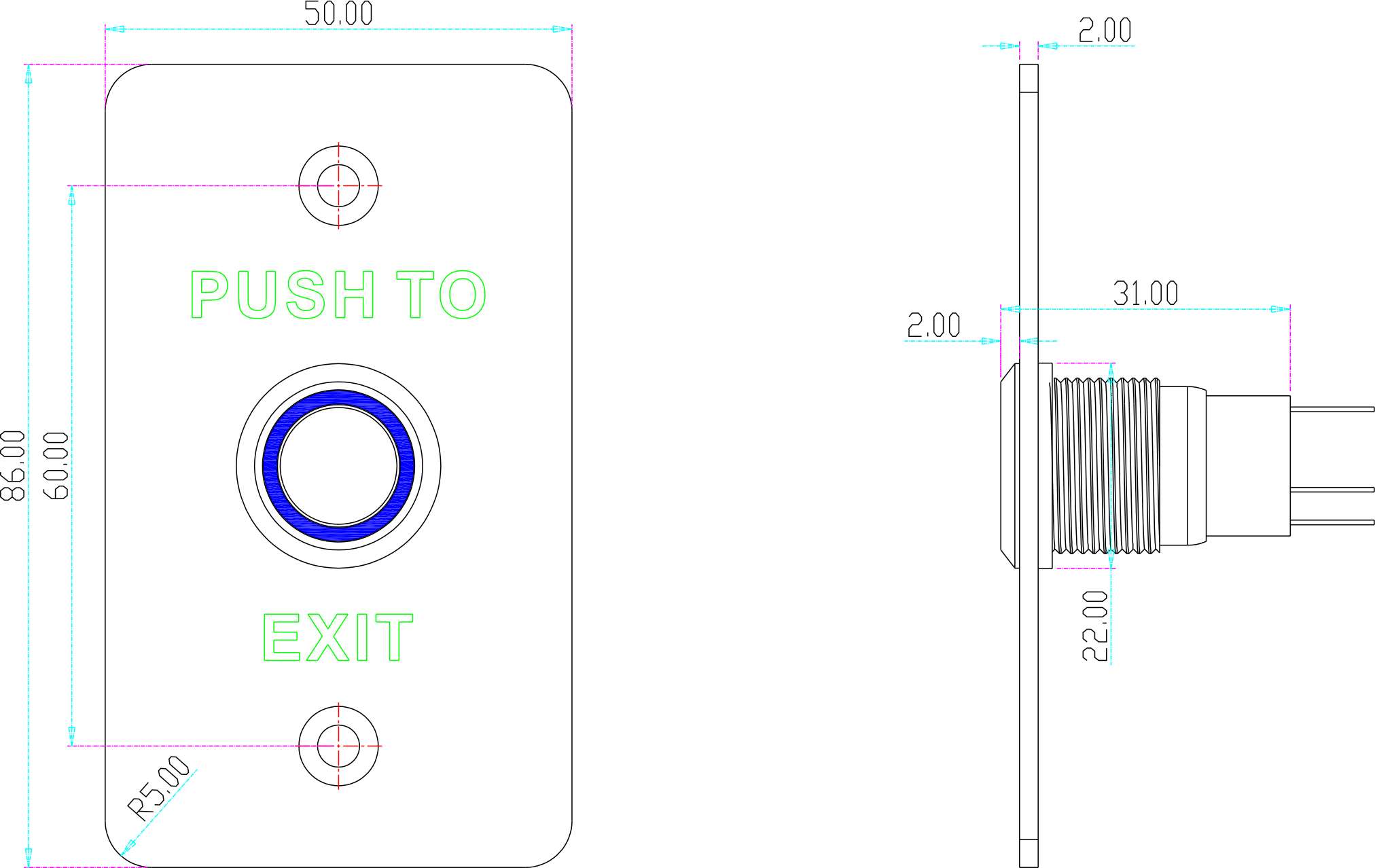 Przycisk wyjścia podtynkowy z podświetleniem BT-7AN