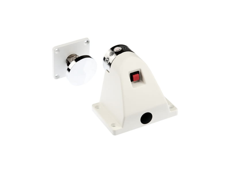 Kluczowym elementem trzymacza jest wbudowany czerwony przycisk awaryjny (testowy). Pozwala on na ręczne zwolnienie blokady drzwi w dowolnym momencie, bez konieczności odcinania zasilania w całym systemie. Jest to funkcja niezbędna podczas okresowych przeglądów technicznych oraz w sytuacjach, gdy chcemy zamknąć drzwi ręcznie. W przypadku alarmu pożarowego i odcięcia napięcia, trzymacz automatycznie zwalnia drzwi, pozwalając samozamykaczowi na ich domknięcie (funkcja Fail-Safe).
