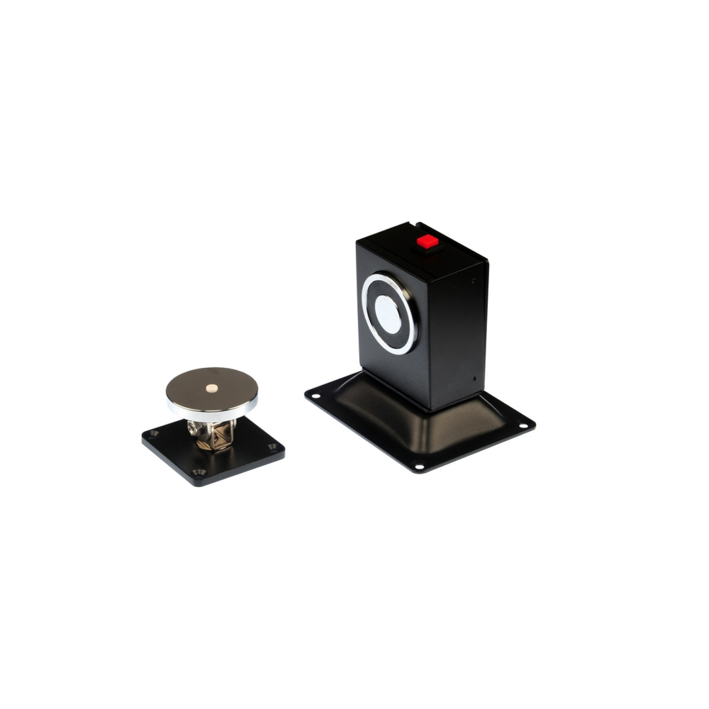 Elektromagnes generuje siłę trzymania na poziomie 50 kg, co skutecznie przeciwdziała samoistnemu zamykaniu się drzwi pod wpływem przeciągów czy działania samozamykaczy. Na obudowie znajduje się widoczny przycisk awaryjny (testowy), który umożliwia ręczne zwolnienie blokady w dowolnym momencie – np. podczas sprzątania czy testów serwisowych. Urządzenie zasilane jest uniwersalnym napięciem 12V lub 24V DC, co czyni je kompatybilnym z niemal każdym systemem niskonapięciowym.