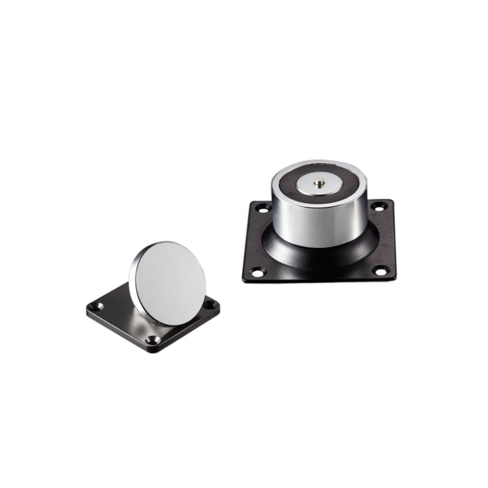 Model DH-41 charakteryzuje się montażem naściennym, co pozwala na stabilne osadzenie elektromagnesu na ścianie za skrzydłem drzwiowym. Urządzenie posiada kompaktową podstawę o wymiarach 80x80 mm, dzięki czemu jest dyskretne i nie zaburza estetyki wnętrza. Jest to idealne rozwiązanie tam, gdzie montaż podłogowy jest utrudniony lub niewskazany ze względów sanitarnych (np. łatwość mycia podłóg w placówkach medycznych).