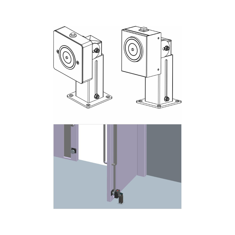 Wspornik BK-DH2 charakteryzuje się pełną uniwersalnością instalacyjną. Możesz go zamontować w pionie (do podłogi), tworząc stabilny słupek dla trzymacza, lub w poziomie (do ściany lub sufitu), aby ominąć przeszkody architektoniczne. Solidna podstawa z czterema otworami montażowymi gwarantuje, że cała konstrukcja będzie sztywna i odporna na wibracje powstające podczas otwierania i zamykania ciężkich drzwi technicznych.