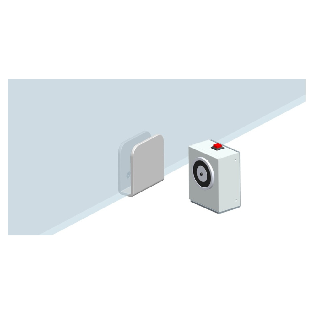 Główną zaletą modelu BK-DH1 jest jego konstrukcja typu "U", która obejmuje krawędź drzwi. Dzięki temu instalacja jest całkowicie bezinwazyjna dla struktury szkła. Uchwyt zaciska się na skrzydle drzwiowym, tworząc stabilną bazę dla płytki metalowej, która współpracuje z elektromagnesem ściennym lub podłogowym. Takie rozwiązanie gwarantuje bezpieczeństwo użytkowania i pozwala zachować gwarancję producenta drzwi.