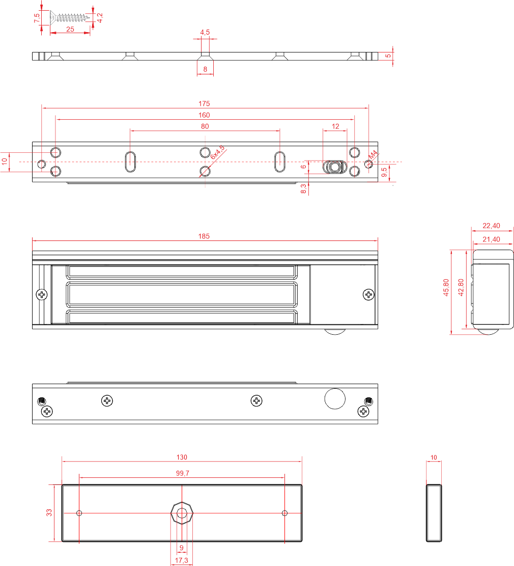 | Wymiary zwory (szer. x wys. x gł.) | 185 x 46 x 22.4 mm |
