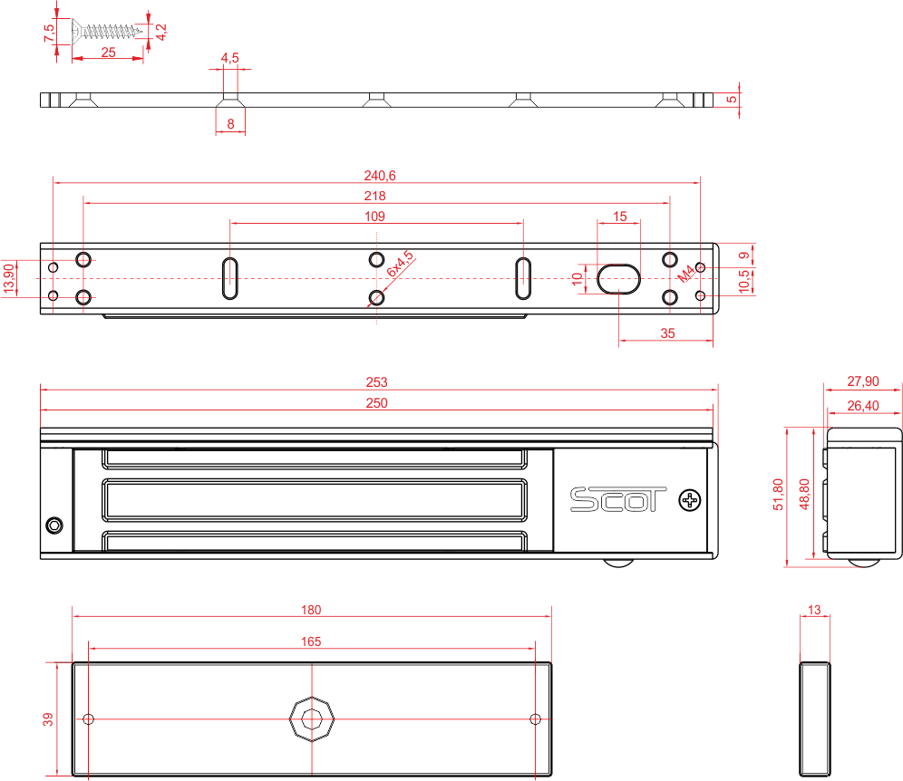 | Wymiary zwory (szer. x wys. x gł.) | 253 x 49 x 28 mm |