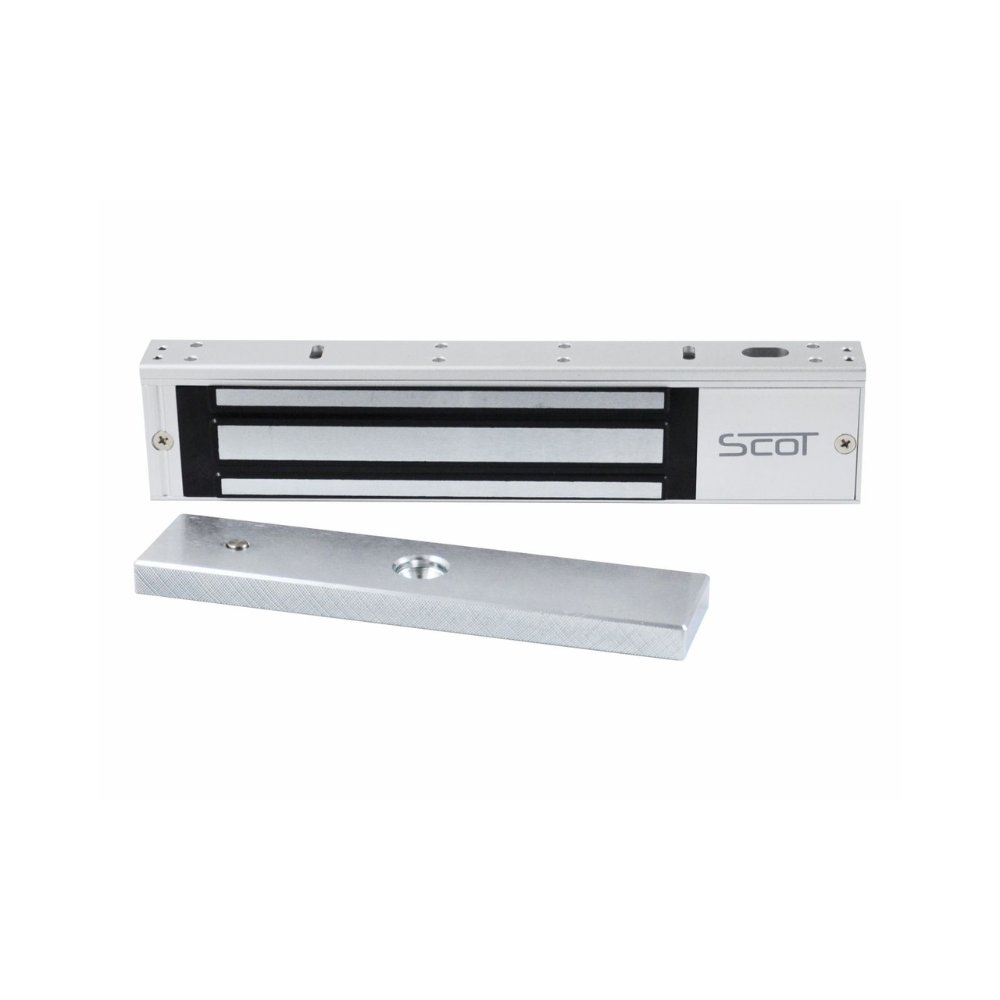 Zwora elektromagnetyczna SCOT EL-800TSL2 o udźwigu 350 kg z funkcją regulowanej zwłoki czasowej (timer). Wyposażona w sygnalizację optyczną LED oraz monitoring stanu drzwi (styk NO/NC). Zasilanie 12V/24V DC. Idealna do przejść o dużym natężeniu ruchu.