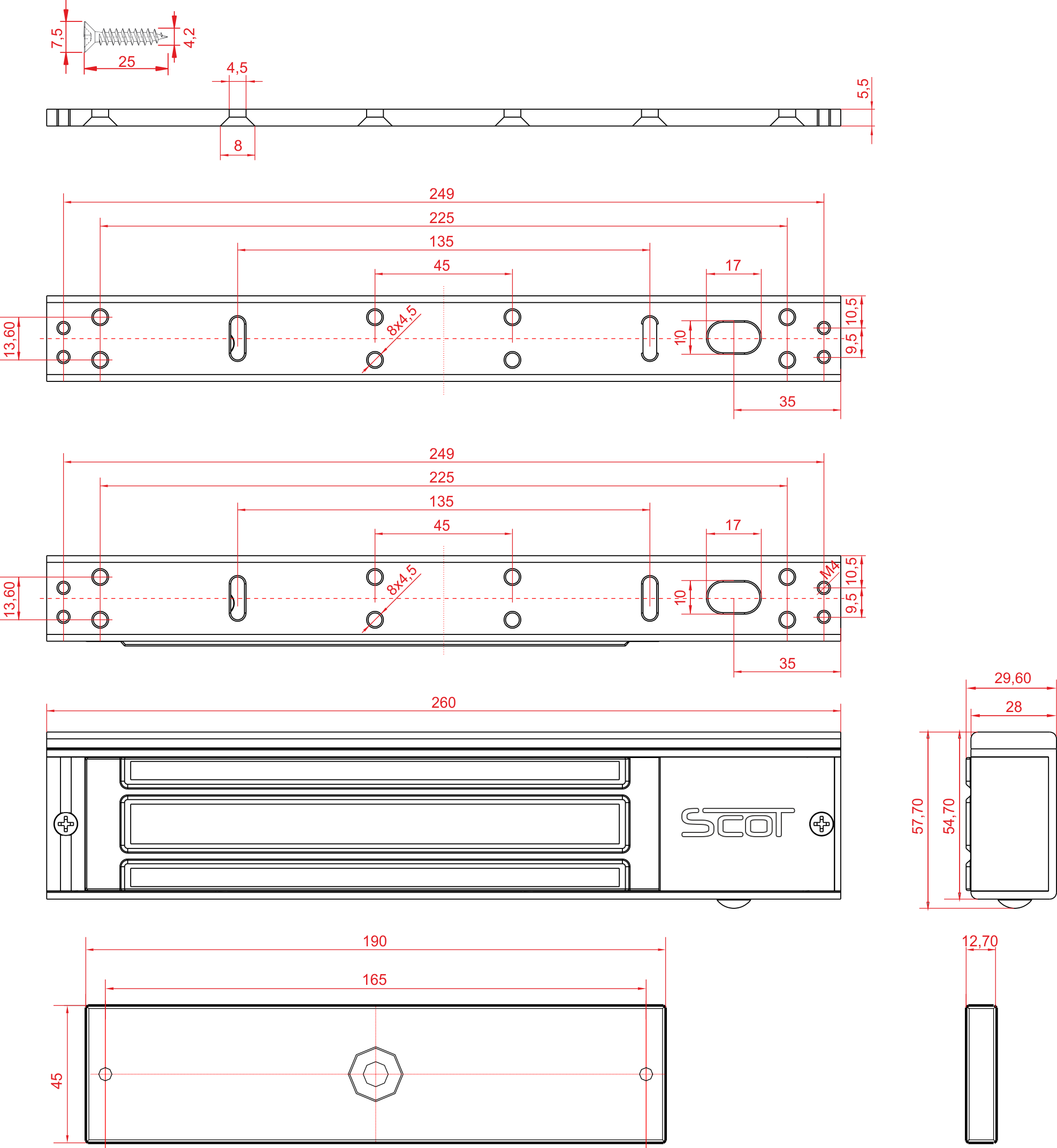 | Wymiary zwory (szer. x wys. x gł.) | 260 x 55 x 29.6 mm |