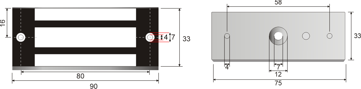 | Wymiary zwory (szer. x wys. x gł.) | 90 x 33 x 20 mm |